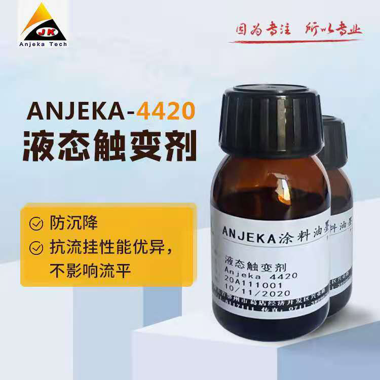 ANJEKA4420水性聚脲觸變劑,液態(tài)流變添加助劑適合于水溶性、分散體、乳液體系添加劑產(chǎn)生高度觸變流動(dòng)性為,提高抗流掛和抗沉降性能。此添加劑也可以后添加,可適用于水、水與醇醚、醇溶劑混合物體系。專業(yè)助劑廠家