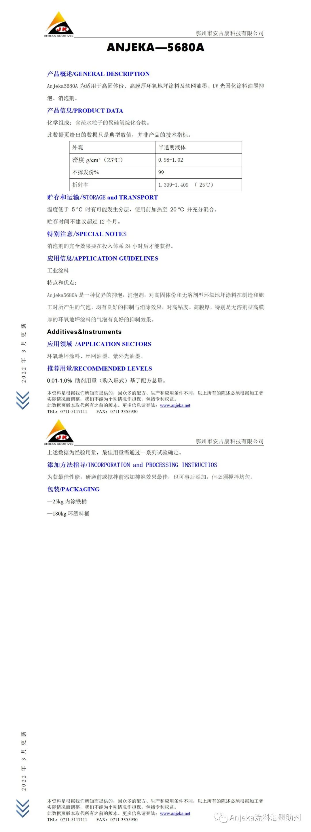 Anjeka-5680A有機硅消泡劑 替代德謙6800、BYK1799 適用于環(huán)氧 地坪漆消泡劑