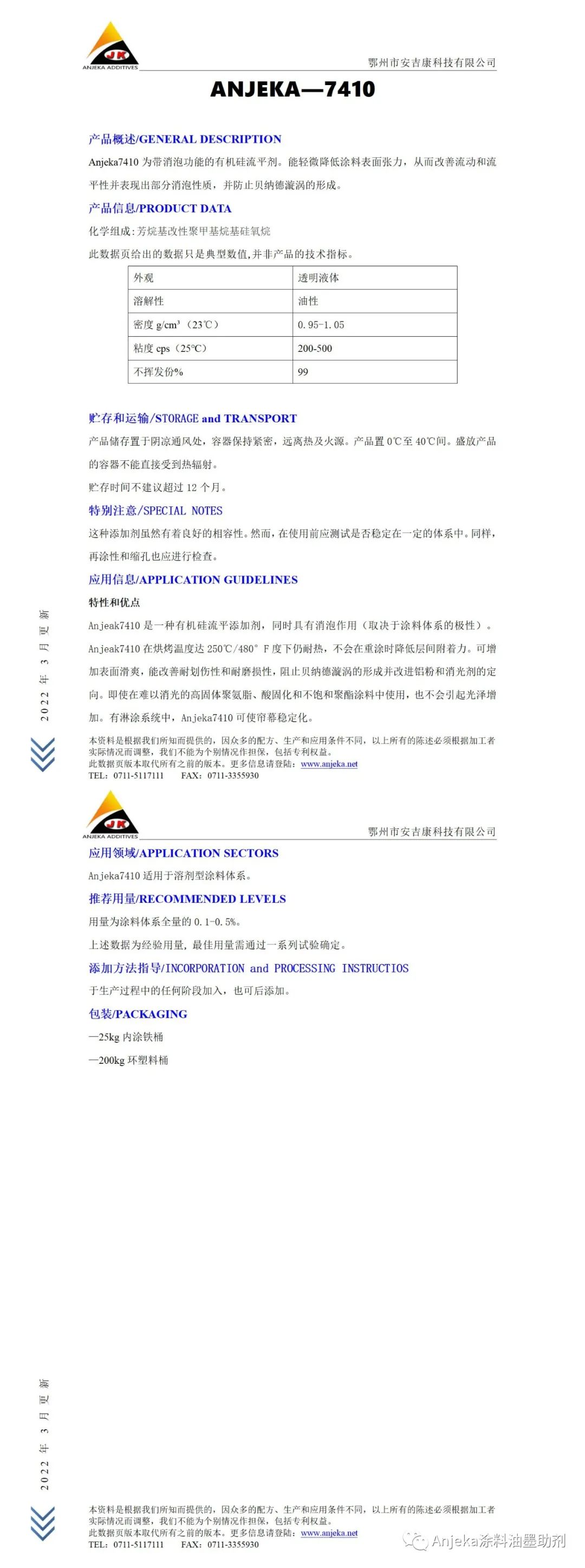 Anjeka7410為帶消泡功能的有機(jī)硅流平劑 可替代BYK322減低涂料表面張力
