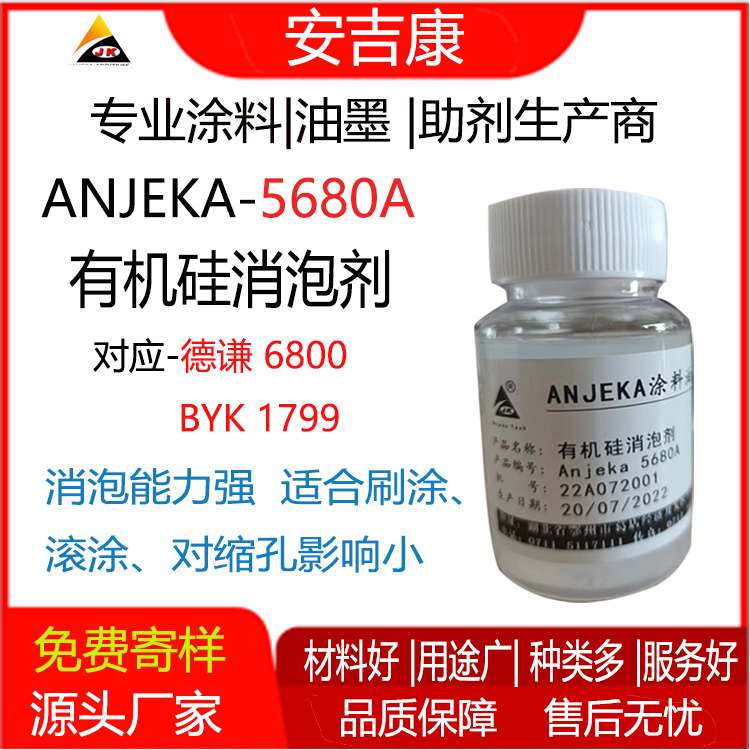 Anjeka5680A 是一種優(yōu)異的抑泡,消泡劑,對高固體份和無溶劑型環(huán)氧地坪涂料在制造和施工時所產生的氣泡,均有良好的抑制與消除效果,對高粘度、高膜厚,特別是無溶劑型高膜厚的環(huán)氧地坪涂料的氣泡有良好的抑制效果